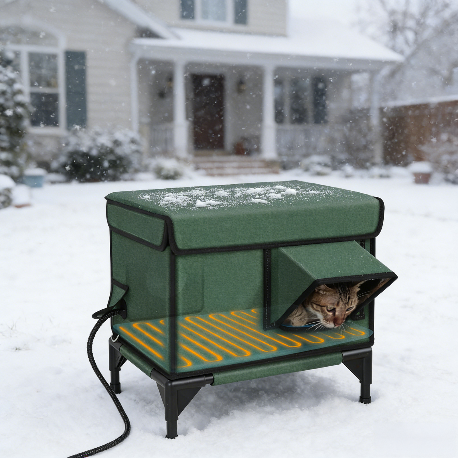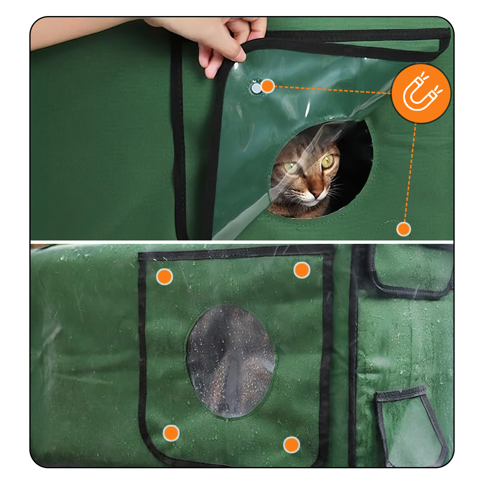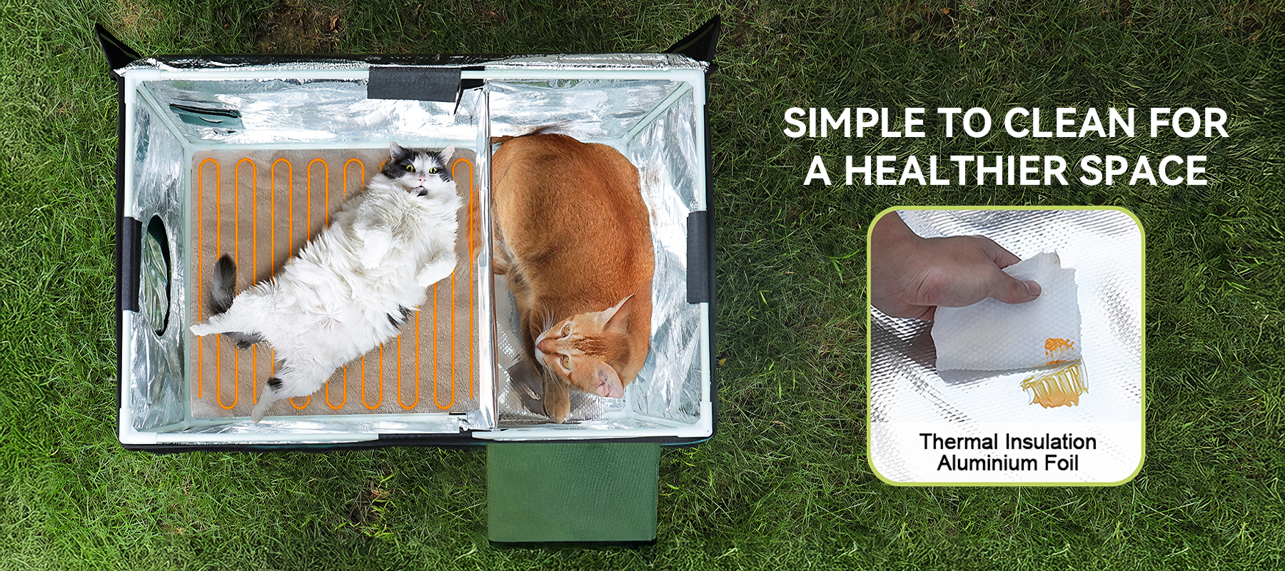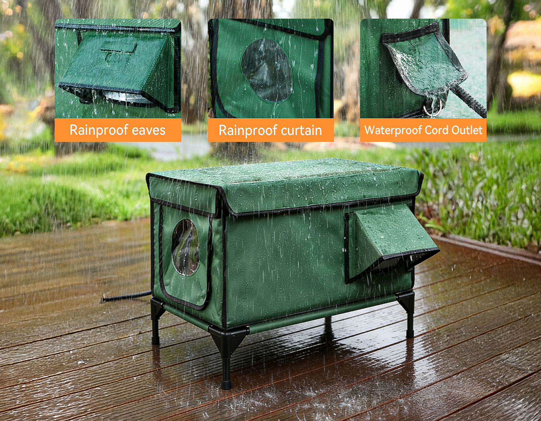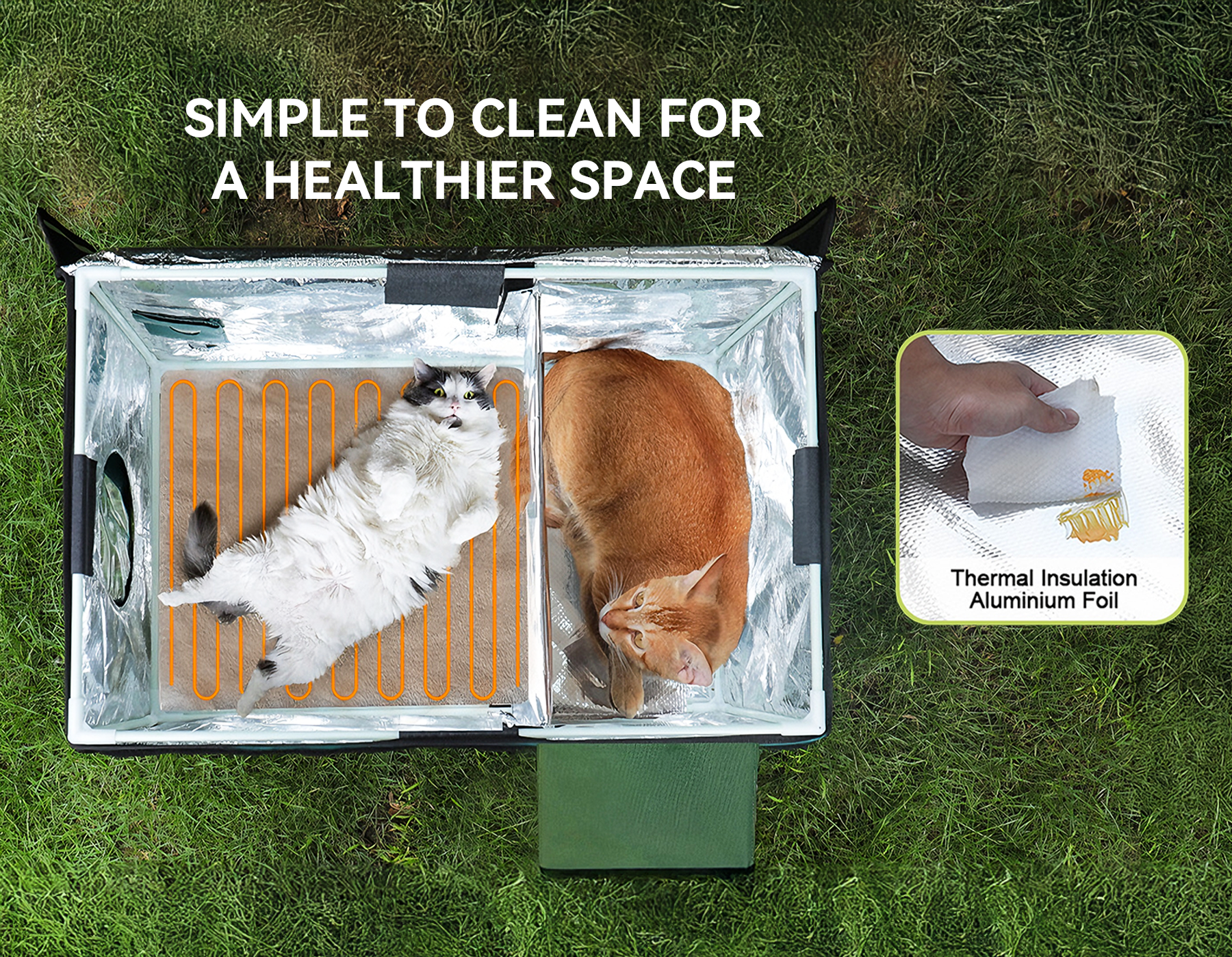 The built-in waterproof heating pad offers your cat a warm, safe refuge, no matter the weather outside. Made with waterproof materials, the heating pad ensures your cat stays warm on cold days while keeping moisture out, providing comfort and warmth all year round.