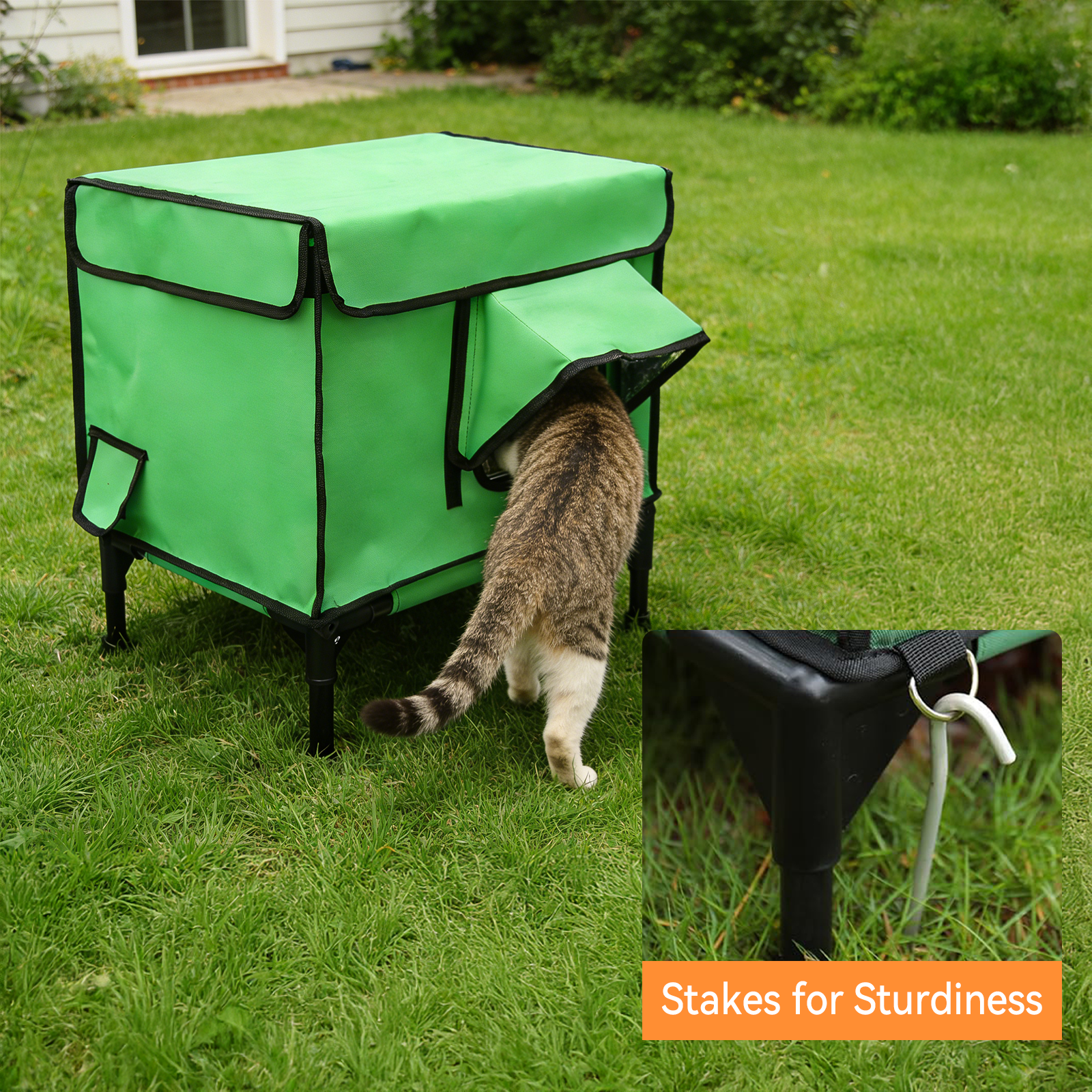 The shelter features ground stakes and wind-resistant design to ensure it stays firmly anchored, even in strong winds. Your cat will remain fully protected, even in harsh weather conditions.
