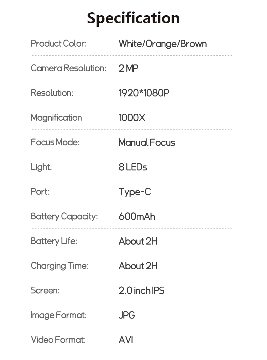 📸 Equipped with a 2MP High-Definition Camera, ensuring the magnified images remain clear, detailed, and true-to-color.